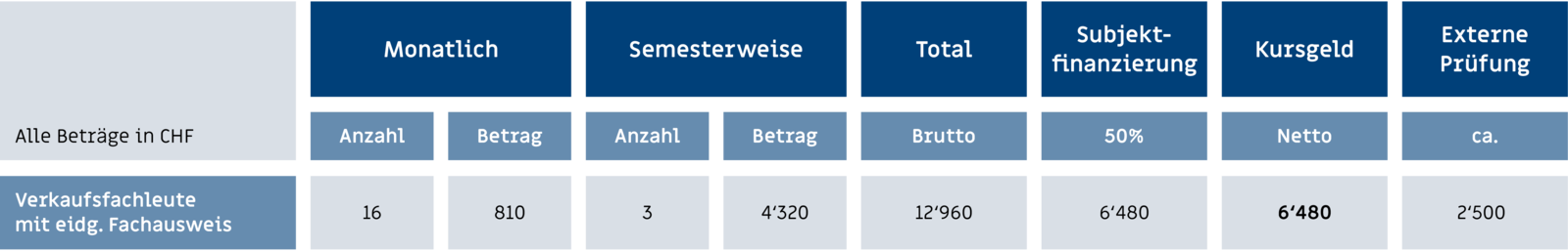 Die berufsbegleitende Weiterbildung Verkaufsfachmann/- frau mit eidg. Fachausweis richtet sich an Personen, welche sich seriös auf die eidg. Prüfung vorbereiten wollen und zudem einen praxisnahen Unterricht schätzen.