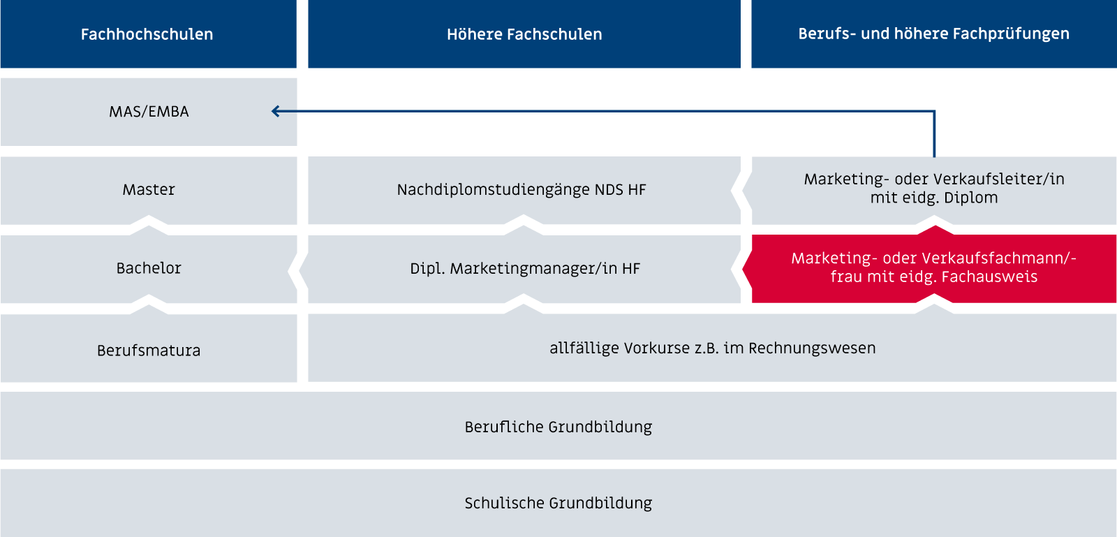 - Mit dem Titel Verkaufsfachmann/- frau mit eidg. Fachausweis sind Sie eine ausgewiesene Fachkraft. Sie sind befähigt eine Postition in den Bereichen Marketing, Verkauf oder Kommunikation selbstständig zu übernehmen.